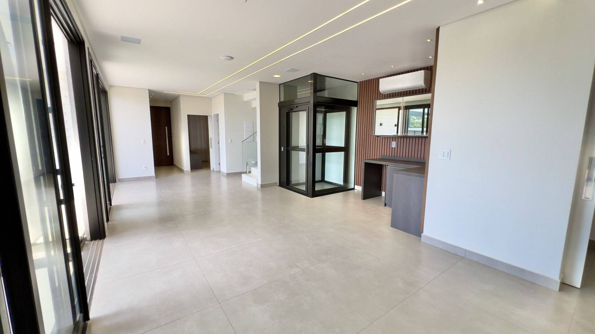 - 3 suítes amplas, todas com armários planejados- Suíte master com closet- 4 banheiros- 4 vagas de garagem- Ar-condicionado em todos os ambientes- Elevador, garantindo conforto e acessibilidade- Escritório- Despensa- Área de serviço- LavaboÁrea Social e Lazer: