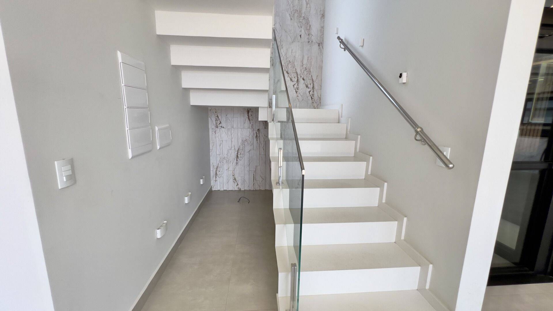 Acabamentos e Diferenciais- Escada em quartzo- Granito marmorizado- Sistema de automação residencial- Sistema de energia fotovoltaica com capacidade para até 500 k